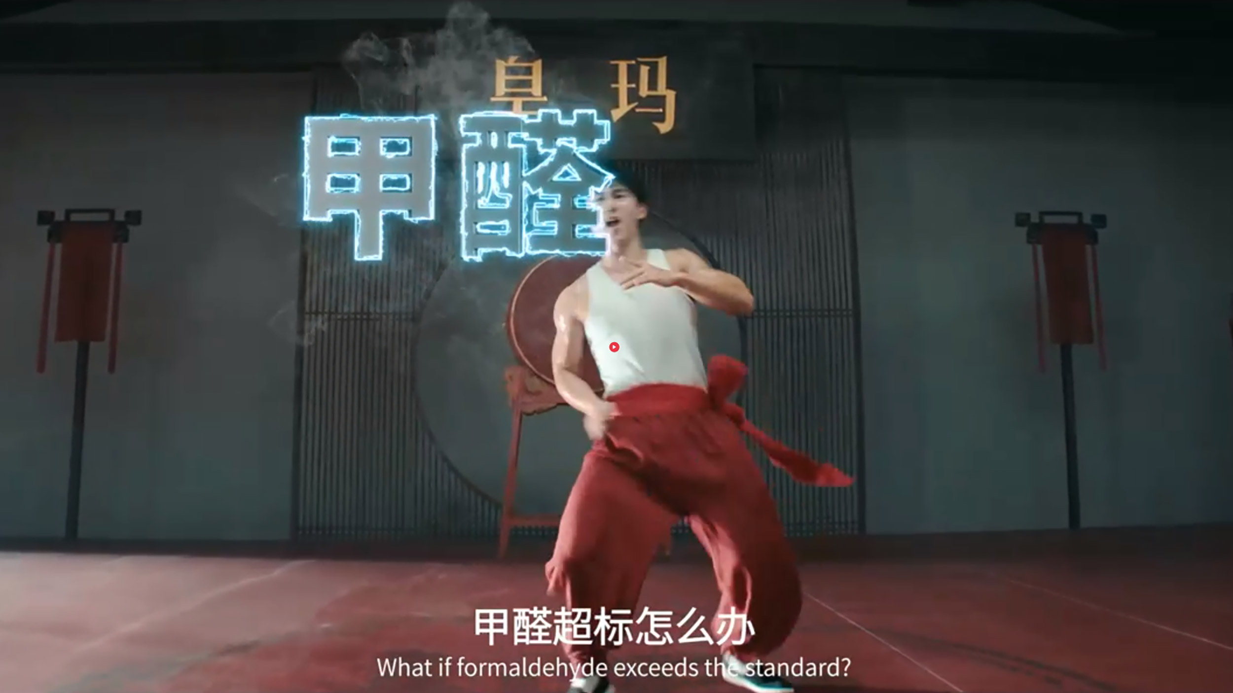 广告开篇,四位大师依次施展开独特的功夫,逐个击破消费者在选购沙发时的痛点。第一位功夫大师,身形矫健,出拳击碎“塌”字,“塌” 字如玻璃般粉碎,四散飞溅的特效光芒象征着皇玛・康之家沙发对塌陷问题的坚决攻克,也暗示着其沙发内部结构稳固,海绵质量上乘,不会轻易出现塌陷情况。第二位功夫大师则以一套刚猛有力的出掌,对着 “响”字攻击,“响” 字轰然破碎,这寓意着皇玛沙发在材质和工艺上的精湛,杜绝了坐后发响的困扰。第三位功夫大师,快速出腿出拳冲向“甲醛”二字,招式大开大合,将“甲醛”特效字搅得支离破碎,展现出皇玛・康之家沙发在环保方面的强大实力,追求0甲醛,为消费者的健康全力守护。第四位功夫大师,动作行云流水,将“贵”字一拳击碎,这一画面传递出皇玛沙发超高的性价比,让消费者不必为高昂价格而却步,不会因买贵而交智商税。